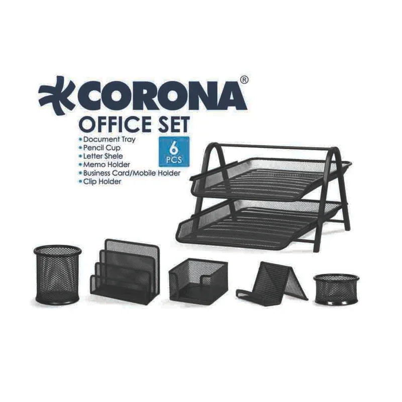 ست توری فلز لوازم اداری رومیزی کرونا مدل C-01 شامل 6 قطعه متنوع و شیک است که نظم و زیبایی را به میز کار شما میآورد. با طراحی مدرن و جنس باکیفیت، این ست انتخابی ایدهآل برای سازماندهی خودکارها، اسناد و لوازم کوچک دیگر است. تجربهای منظم و دلپذیر را با این محصول بینظیر تجربه کنید.