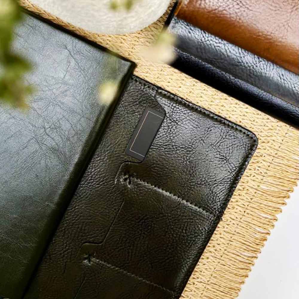 صحافی ته دوخت تمام اتوماتیک، به همراه کیف چرم طبیعی، جای قلم و مدارک