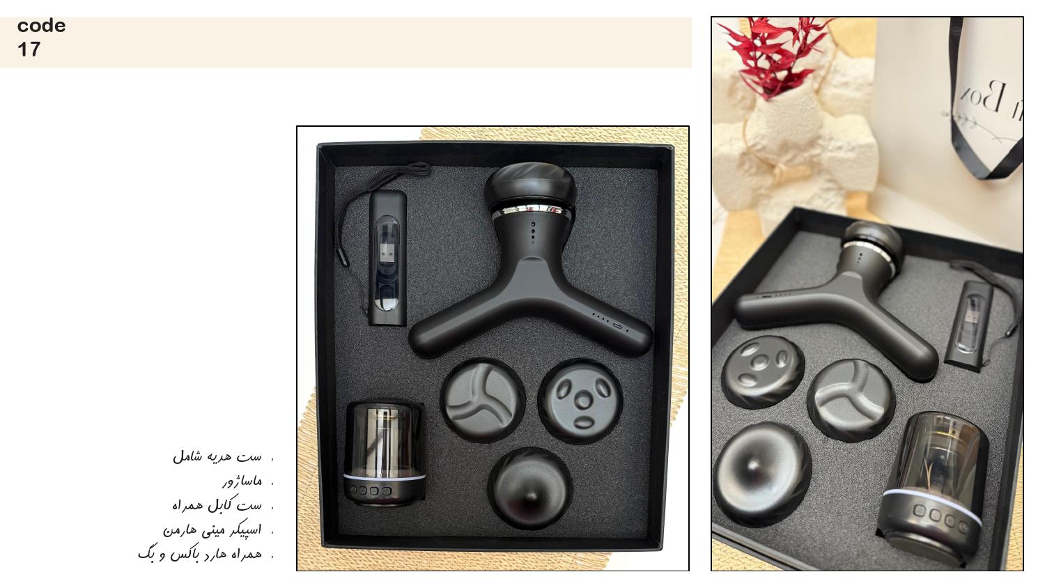 ماساژور، ست کابل همراه، اسپیکر مینی هارمن، همراه هارد باکس و بگ