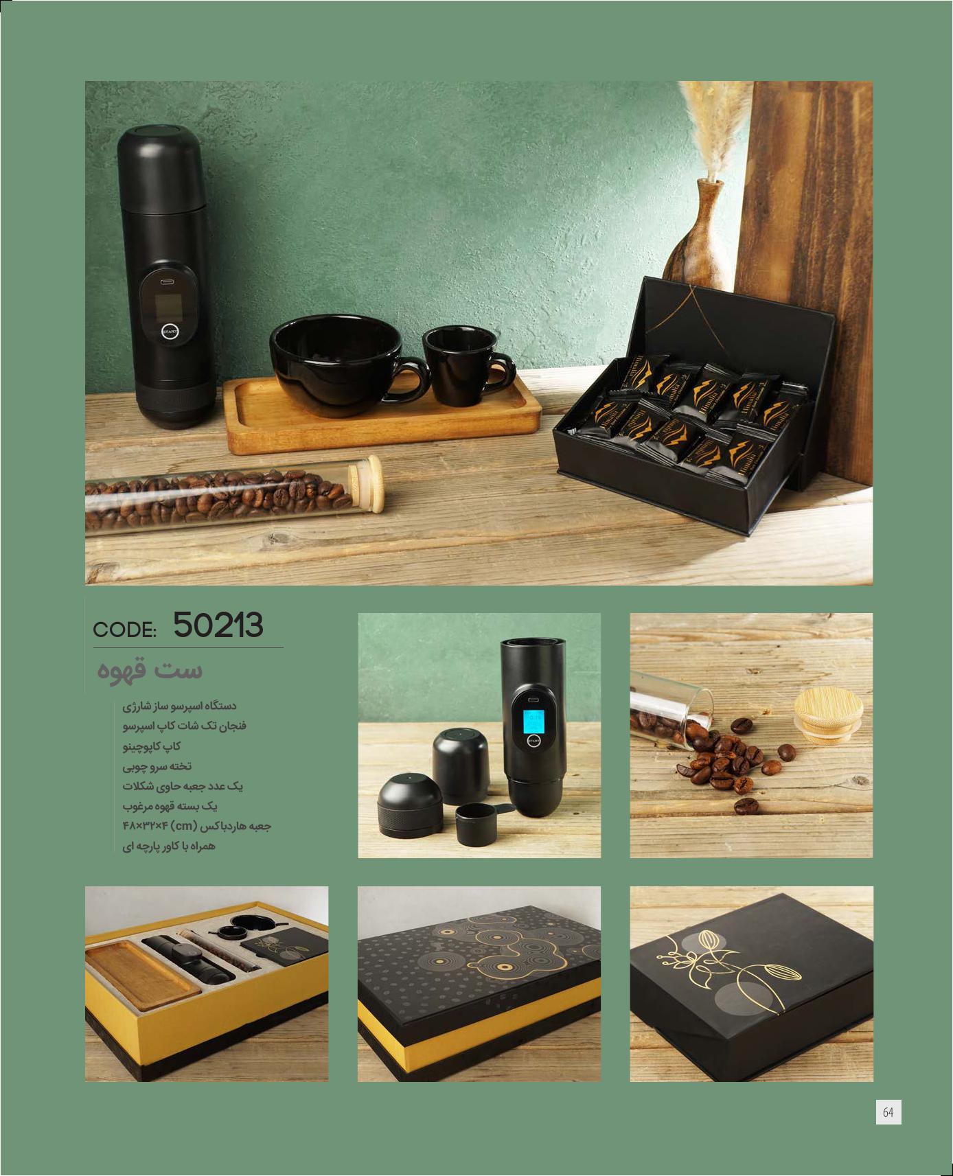 این ست بسیار شیک یک هدیه مناسب به مناسبت نوروز 1405 با اقلامی مثل دستگاه اسپرسوساز شارژی، کاپ کاپوچینو، فنجان تک شات کاپ اسپرسو، قهوه مرغوب، 2عدد جعبه شکلات همراه شکلات، تخته سرو چوبی، یک بسته قهوه مرغوب، به همراه کاور پارچهای و... در جعبه ای نفیس(هارد باکس) برای شما عزیزان طراحی شدهاست تا با انرژی به استقبال سال جدید بروید.