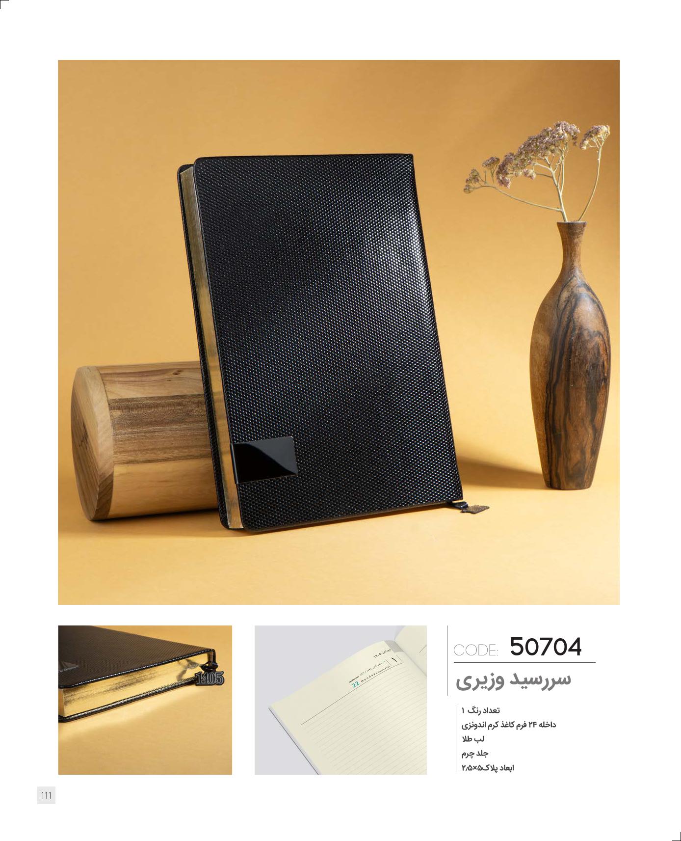 داخل24فرم، کاغذ کرم اندونزی، لب طلا، جلد چرم، دارای پلاک 1405 به ابعاد 2.5*5