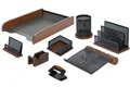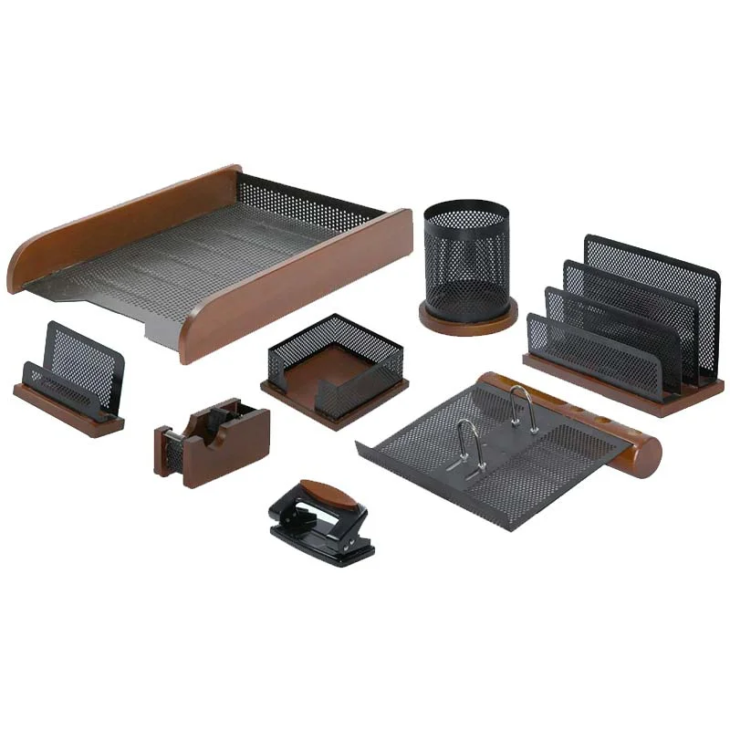 راگر کارمند، مدیر یا رییس هستید، مرتب بودن وسایل میز کارتان نشان از شخصیت و اهمیتی که به نظم و ترتیب میدهد، دارد. حفظ نظم و ترتیب مداوم میز کار به دلیل فضای محدود میز و در عین حال حجم بالای لوازمی که همه باید روی میز باشند، کار دشواری خواهد بود، اما این به معنی غیر ممکن بودن این امر نیست. با استفاده از مجموعه لوازم اداری رومیزی که در انواع گوناگون و با طراحیها و امکانات متنوع در بازار وجود دارد، میتوانید میز کاری مرتب، زیبا و شیک داشته باشید. بستار از جمله تولیدکنندگانی است که مجموعه لوازم اداری رومیزی با طراحیهای گوناگونی عرضه کرده و یکی از این مجموعهها محصول پیش رو است. این مجموعه با طراحی شیک مشکی و قسمتهای چوبی هلالی جلوهی زیبایی به میز کار شما میدهد. این مجموعه دارای یک محفظه برای جای دادن کاغذ و اسناد است. یک جاقلمی زیبا و جای کاغذ یادداشت هم در این مجموعه وجود دارد. جای نامه و جای گیره هم در این مجموعه تعبیه شده است.