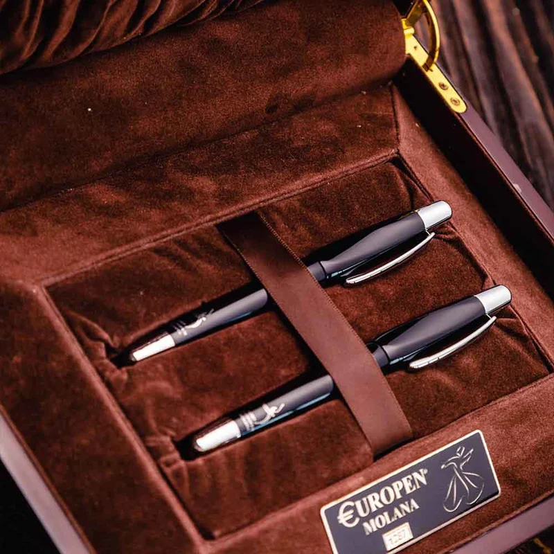 ست رواننویس و خودنویس مولانا عارف در سال 2015 و به پاسداشت این شاعر و عارف بزرگ، طراحی و تولید شد. نوشتافزارهای این ست به شکلی طراحی شدهاند که در همهی قسمتهایشان نشانی از مسلک مولانا را داشته باشند. این نوشتافزارها با کیفیت مناسب و طراحی منحصربهفردشان این محصول «یوروپن» (Europen) را به هدیهای مناسب برای عزیزترین و مهمترین افراد زندگیتان تبدیل کردهاند. در طراحی بدنهی خودنویس و رواننویس از رقص سماع الهام گرفته شده است. بهاینترتیب که قسمت فلزی بالا و پایین نوشتافزار به شکل کلاه و پیچوتاب بدنه با الهام از چرخش و ردای سماع کنندگان طراحی شده است. این بدنه از فلز ساخته شده و به همین دلیل دوام زیادی دارد. گیرهای که روی بدنهی این دو تعبیه شده، به شما امکان میدهد تا با حمل آنها در جیبتان، همیشه و همهجا از نوشتن با رواننویس و خودنویس محبوبتان لذت ببرید. این خودنویس و رواننویس در جعبهای چوبی و نفیس در کنار هم قرار گرفته و به یک هدیهی مناسب برای علاقهمندان به مولانا تبدیل شدهاند. این جعبه دارای شمارهی منحصربهفردی است که نشان دهندهی تعلق آن به شخص شما است.